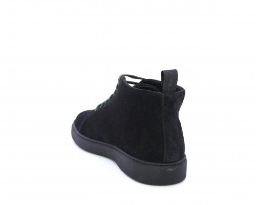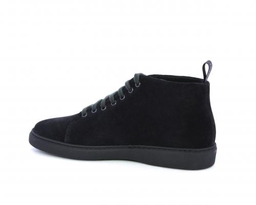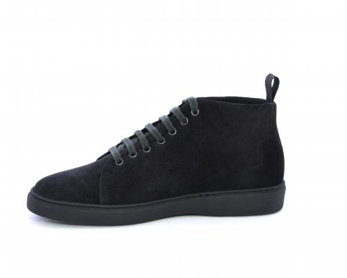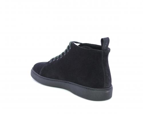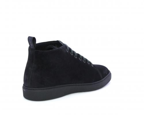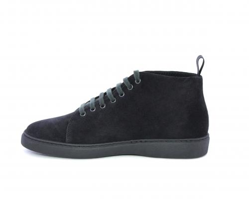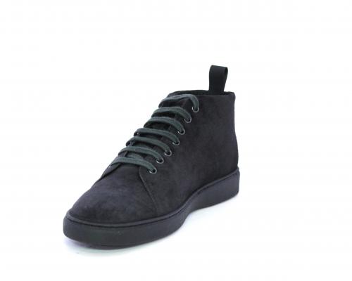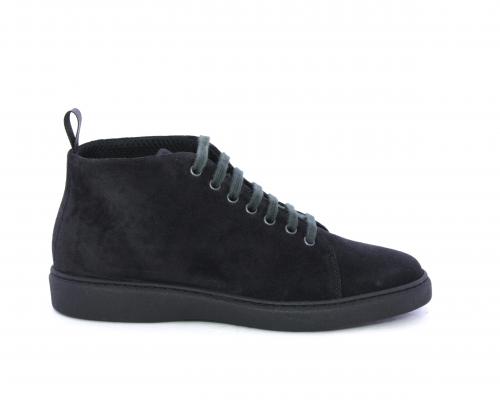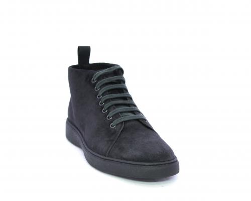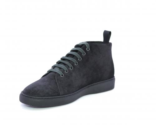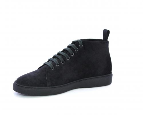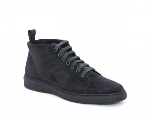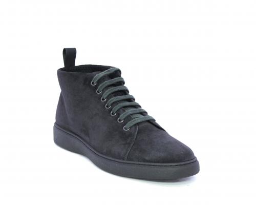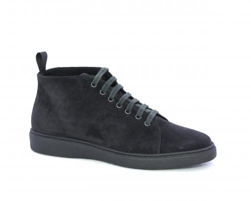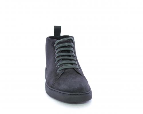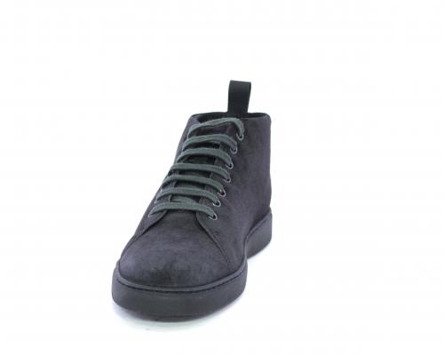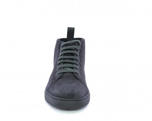 Polacchina con lacci con doppio colore grigio e blu, tomaia in camoscio, sottopiede e fodera interna in tessuto traspirante, fusbet anatomico estraibile.