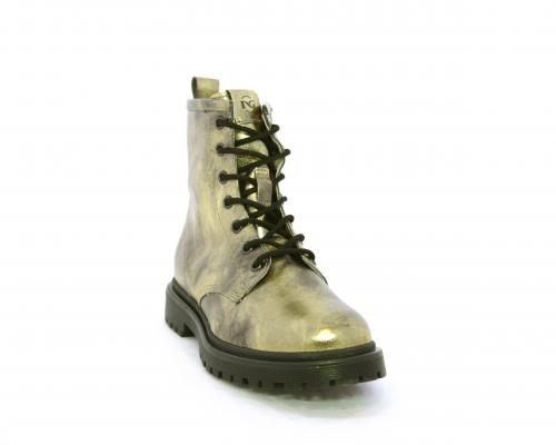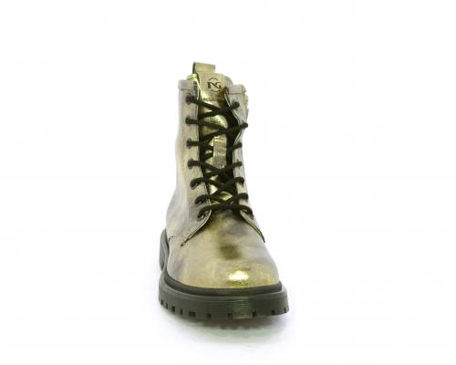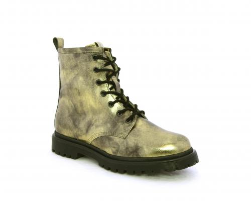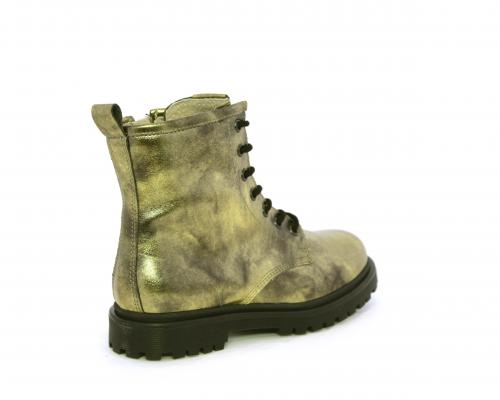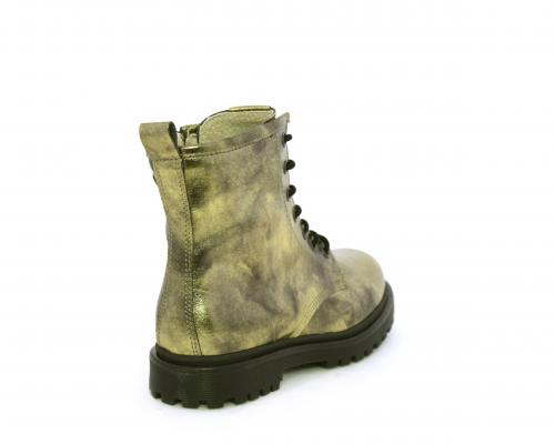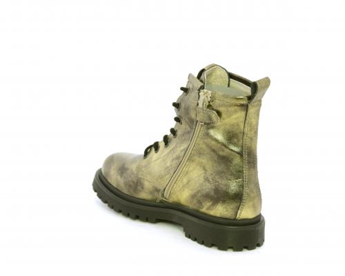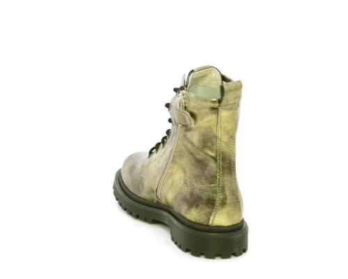 Anfibio con lacci e chiusura laterale,fondo in gomma, tomaia in pelle satinata, sottopiede e fodera interna in pelle, fusbet anatomico.