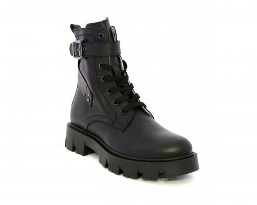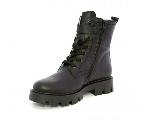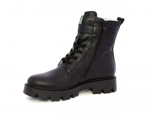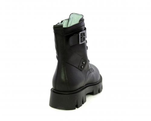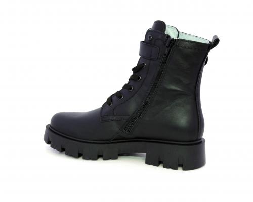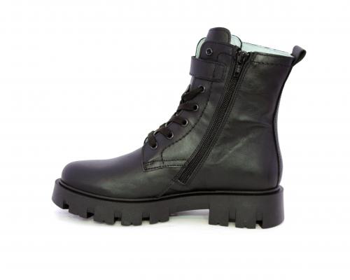 Anfibio fondo gomma, lacci e chiusura laterale per facilitare la calzata, tomaia in pelle con fibbia laterale regolabile, sottopiede e fodera interna in pelle, fusbet anatomico.
