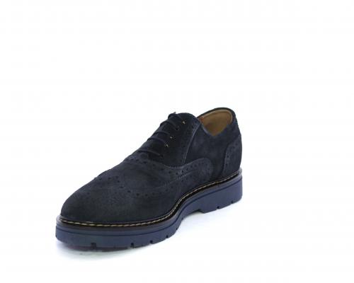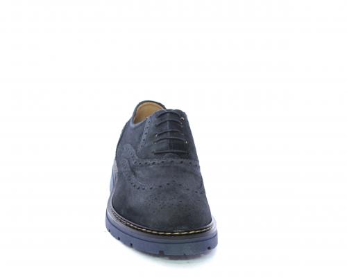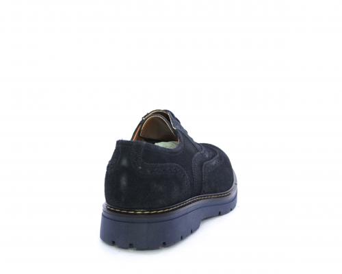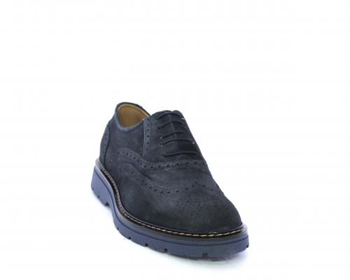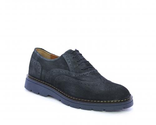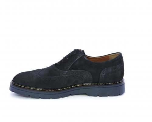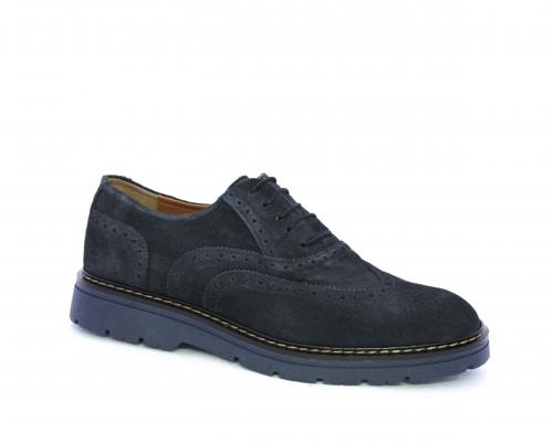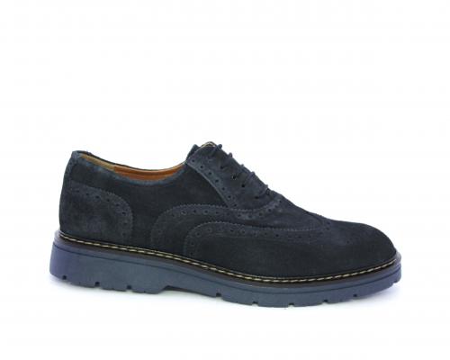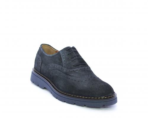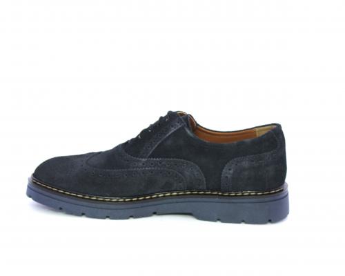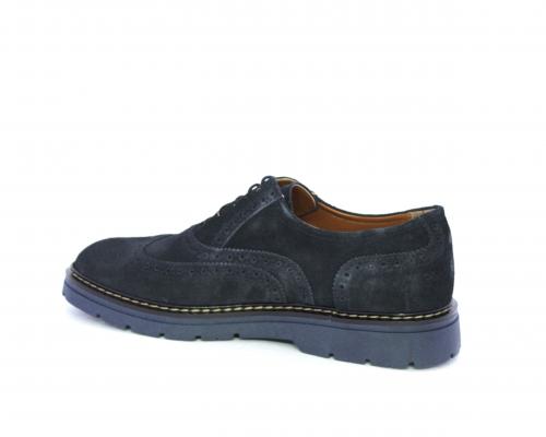 Scarpa con lacci, fondo in gomma, tomaia in camoscio con disegno stile inglish, sottopiede e fodera interna in pelle, fusbet anatomico.