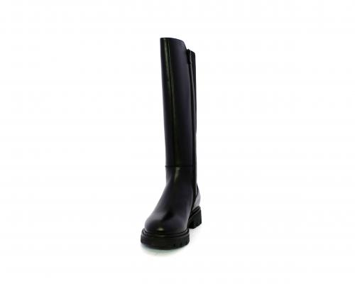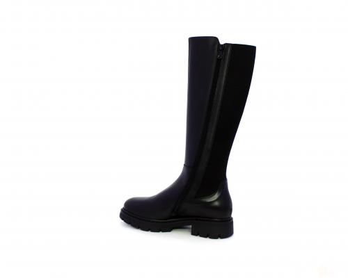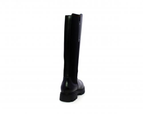 Stivale lungo con fondo in gomma, tomaia per metà in pelle e metà in tessuto elasticizzato, con chiusura con zip intera, sottopiede e fodera interna in pelle, fusbet anatomico.