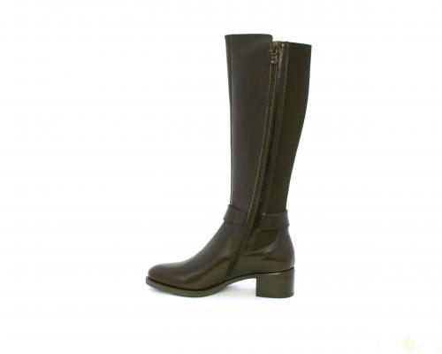 Stivale lungo con chiusura laterale ed elastico per metà gamba, tomaia in pelle con fibbia laterale, sottopiede e fodera interna in pelle, fusbet anatomico estraibile con sistema DryGo, che svolge una doppia azione assorbe l'umidità quando si indossa lo stivale e si asciuga rapidamente quando si toglie la calzatura.