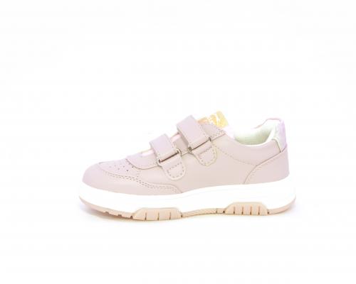 Sneakers con doppio velcro, tomaia in pelle con inserti in lurex, sottopiede in pelle, fodera interna in tessuto.