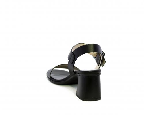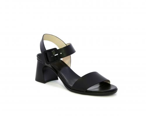 Sandalo con tacco largo, fondo in gomma, tomaia in pelle con fascia e fibbia sul collo del piede, sottopiede e fodera interna in pelle, fusbet con memory.
