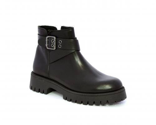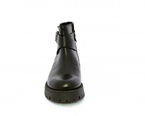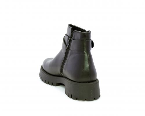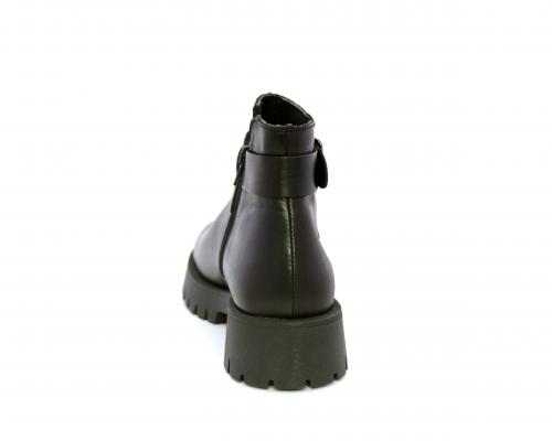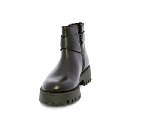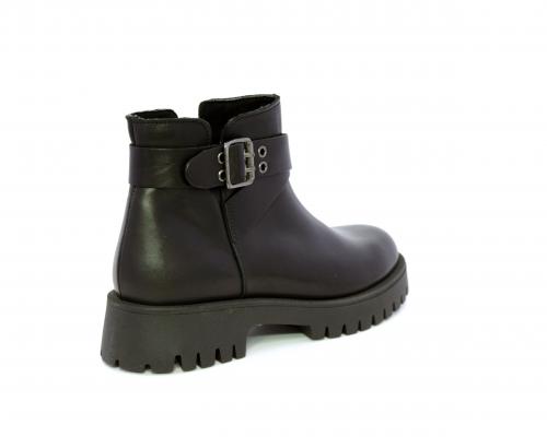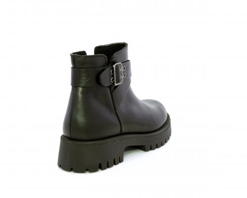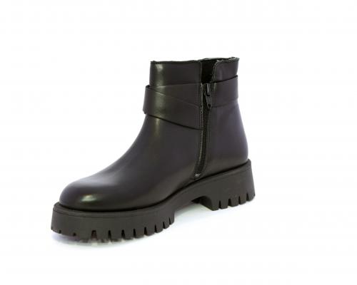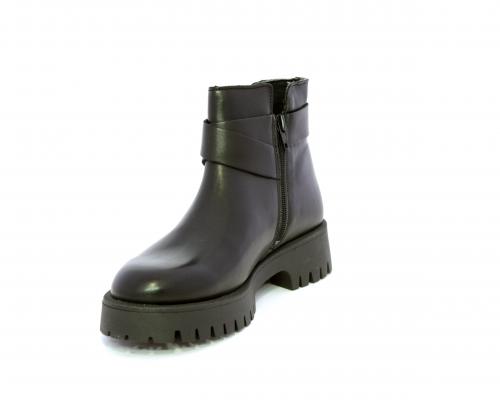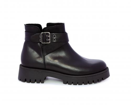 Tronchetto con tacco e plateaux in gomma, tomaia in pelle con chiusura laterale e fibbia laterale regolabile, sottopiede e fodera interna in tessuto, fusbet anatomico con memory.