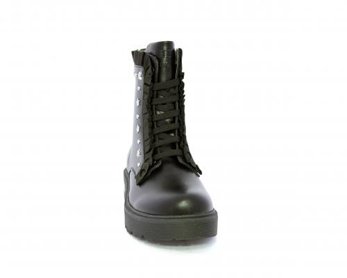 Anfibio con lacci e chiusura laterale, fondo in gomma con medaglia in acciaio con logo, tomaia in pelle con accessori in acciaio, sottopiede in pelle, fodera interna in tessuto, fusbet anatomico.