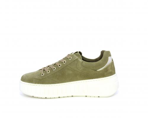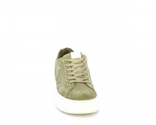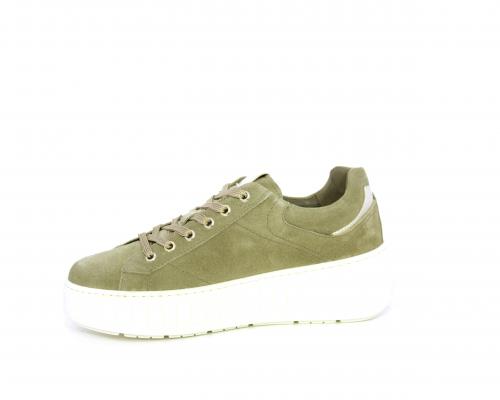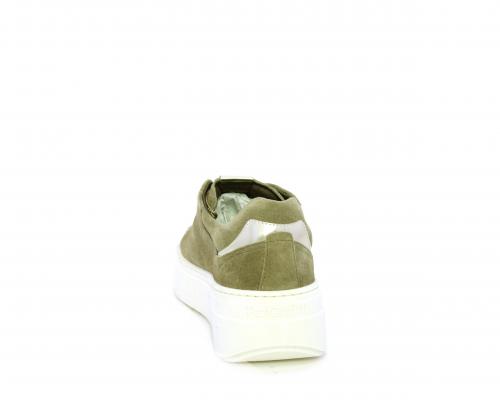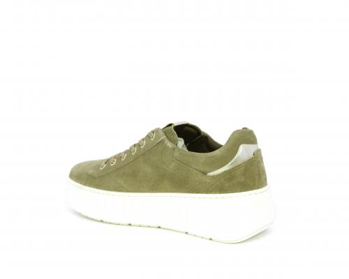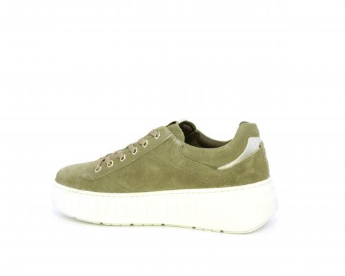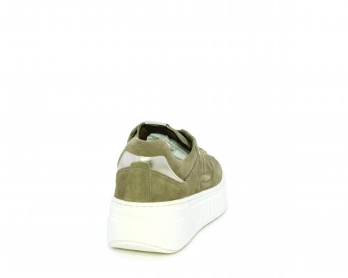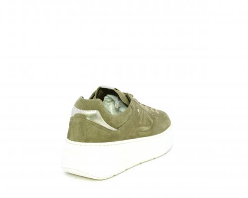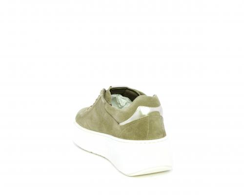 Sneakers con lacci, zeppa e platform in gomma, tomaia in camoscio con rifiniture platino, sottopiede in tessuto, fodera interna in pelle, fusbet estraibile in poliuretano Dry-Go, con doppia capacità sia assorbire il sudore sia di asciugarsi rapidamente, inoltre ha anche la funzione MEMORY che si modella al piede garantendo confort e benessere.