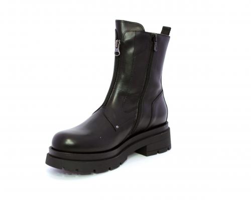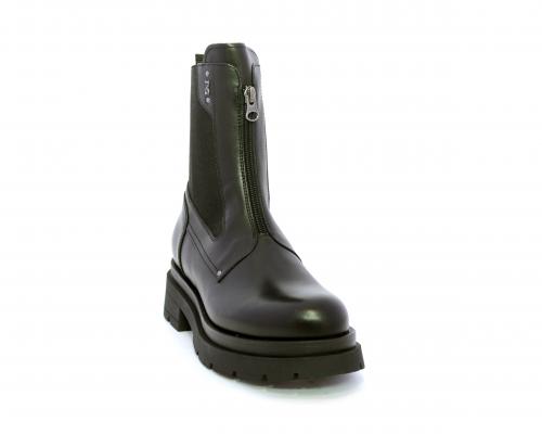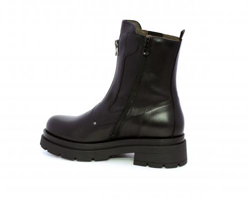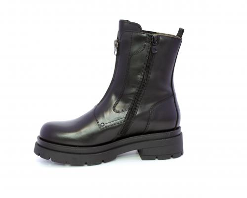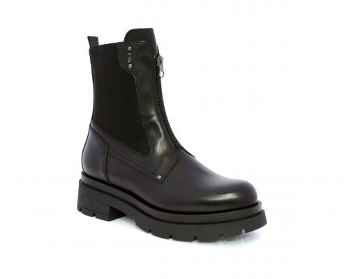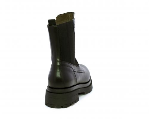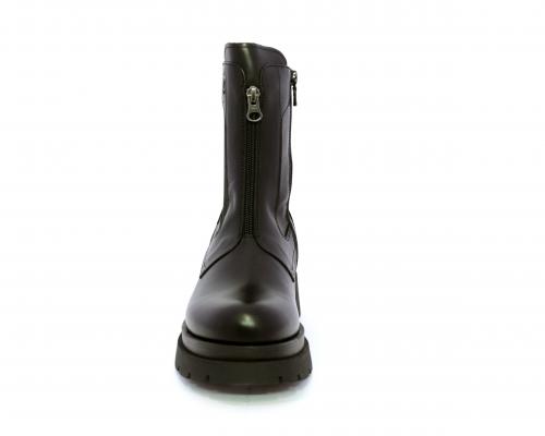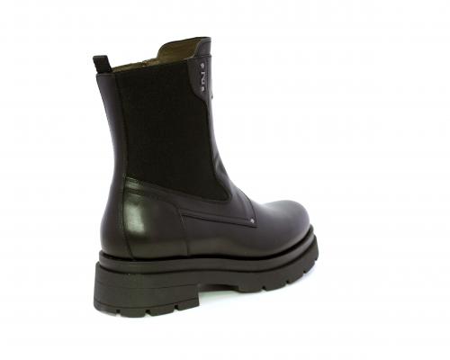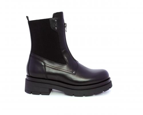 Tronchetto con chiusura laterale, tacco e plateaux in gomma, tomaia in pelle con parte laterale in tessuto elasticizzato e chiusura nella parte anteriore solo estetica, sottopiede e fodera interna in pelle,fusbet con MEMORY che si modella al piede garantendo confort e benessere.