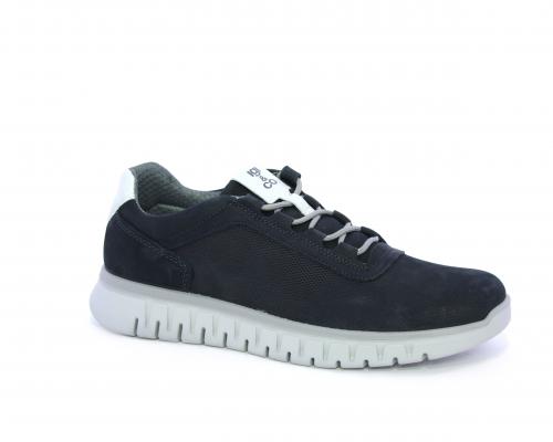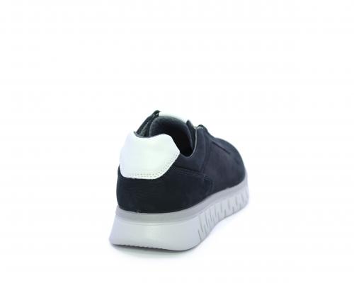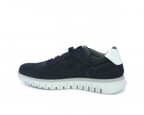 Sneakers con lacci, fondo in gomma grigio, tomaia in nabuk e parte in pelle bianca dietro al tallone, sottopiede in pelle, fodera interna in tesuto, fusbet estraibile con memory foam che attenua i micro-impatti al camminare.