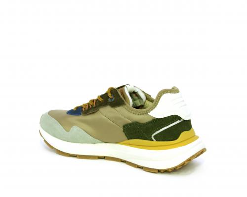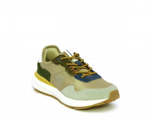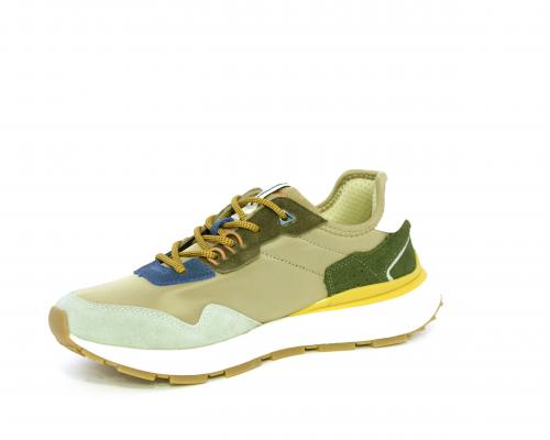Sneakers con lacci, fondo in gomma, tomaia in tessuto con parti in suede colorate, sottopiede e fodera interna in tessuto traspirante, fusbet estraibile con memory foam per donare confort durante la camminata.