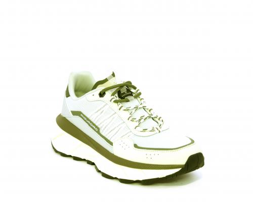Sneakers con doppio laccio un laccio verde e un laccio bicolor di ricambio, fondo in gomma, tomaia in tessuto con parti in pelle, sottopiede e fodera interna in tessuto traspirante, fusbet estraibile con memory foam per donare confort durante la camminata.