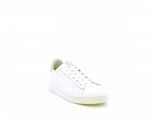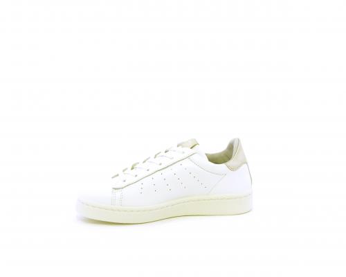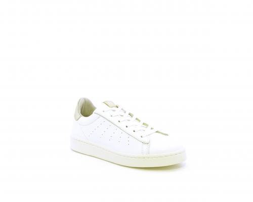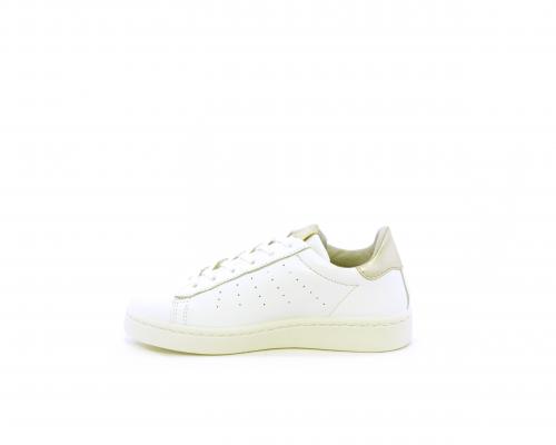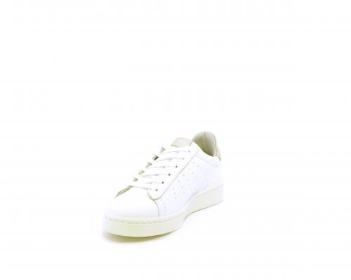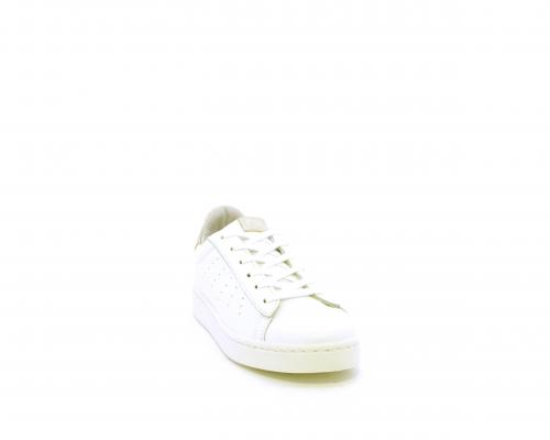 Sneakers con lacci, fondo in gomma, tomaia in pelle e dietro al tallone inserto in pelle color platino, sottopiede in pelle, fodera interna in pelle e tessuto, fusbet estraibile con memory .