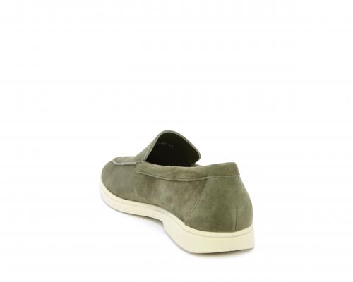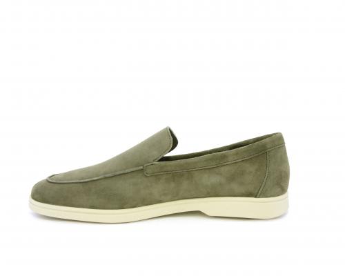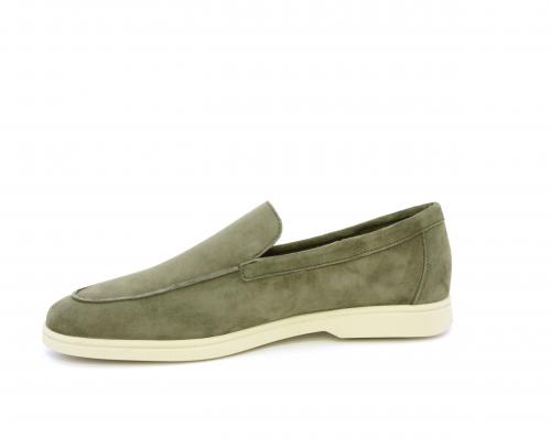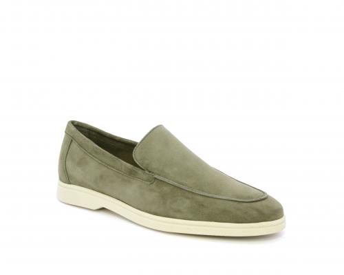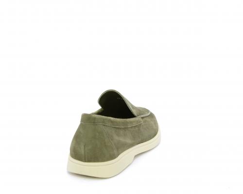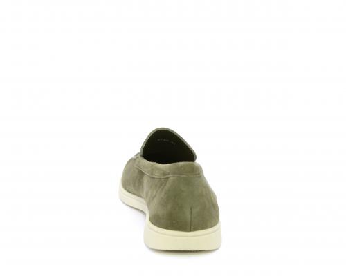 Mocassino fondo in gomma, tomaia in daino timo, sottopiede e fodera interna in pelle, fusbet estraibile con memory foam per donare confort durante la camminata.
