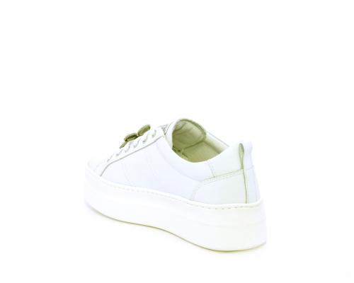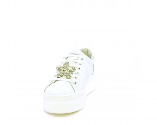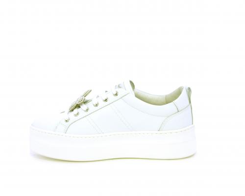 Sneakers con lacci, platform in gomma, tomaia in pelle con accessori removibili nei lacci, sottopiede e fodera interna in pelle, fusbet estraibile in poliuretano Dry-Go, che oltre a svolgere un'azione di assorbimento del sudore e rapida asciugatura mantenendo il piede sempre asciutto, adesso offre anche la funzione memory che modellandosi delicatamente al piede dona confort e benessere.