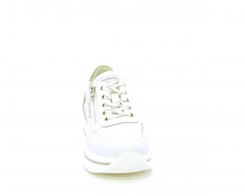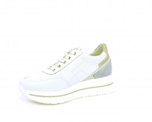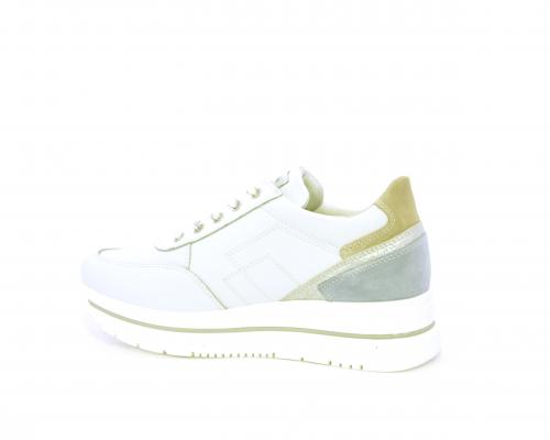 Sneakers con lacci e chiusura laterale per facilitare la calzata, zeppa e plateaux in gomma, tomaia in pelle con parte in suede colorata dietro altallone, sottopiede e fodera interna in pelle, fusbet estraibile in poliuretano Dry-Go, che oltre a svolgere azione di assorbimento del sudore e rapida asciugatura mantenendo il piede sempre asciutto, adesso offre anche la funzione memory che modellandosi delicatamente al piede dona confort e benessere.