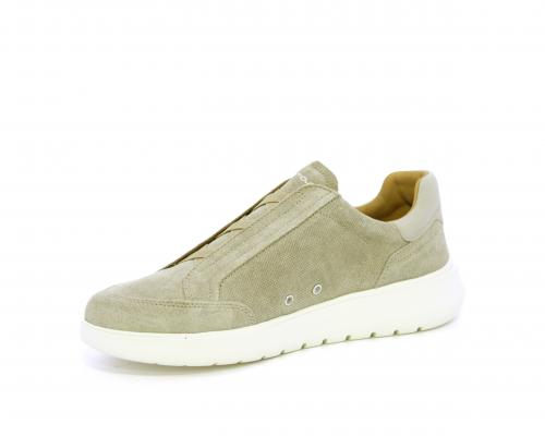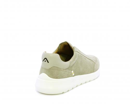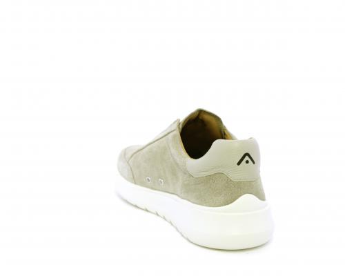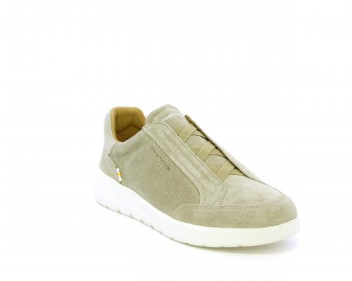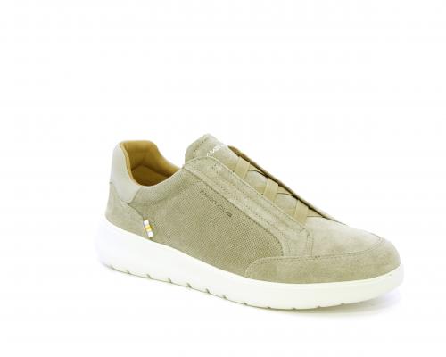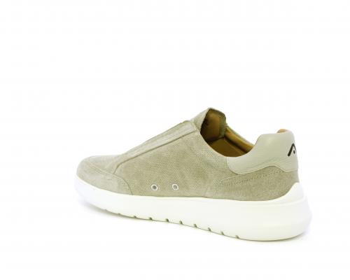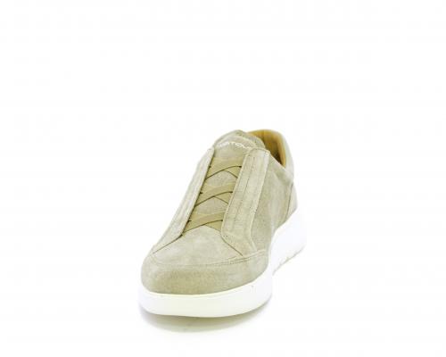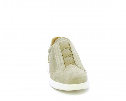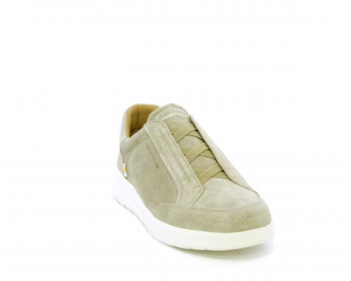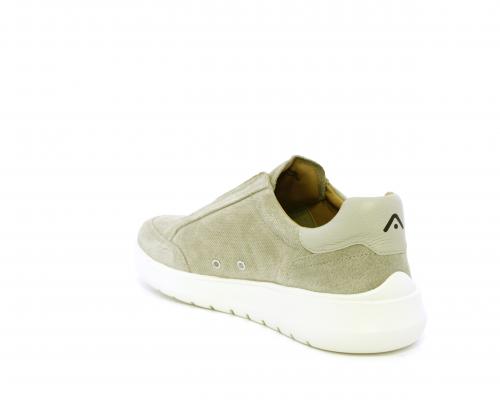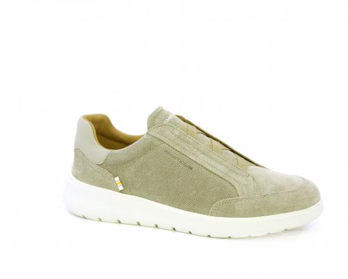 Sneakers senza lacci con elastico sul collo del piede, tomaia in suede, sottopiede e fodera interna in pelle, fusbet estraibile con memory per donare massimo confort durante la camminata ed elevata flessibilità .