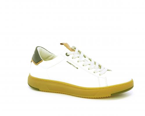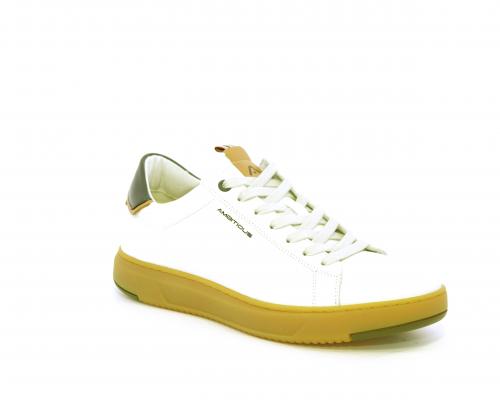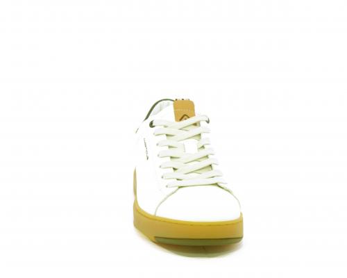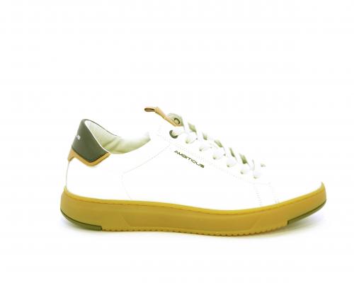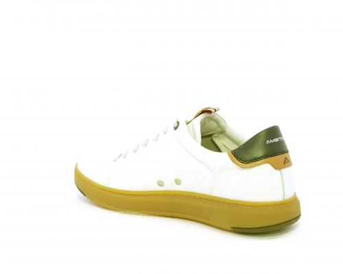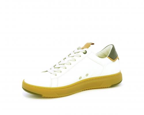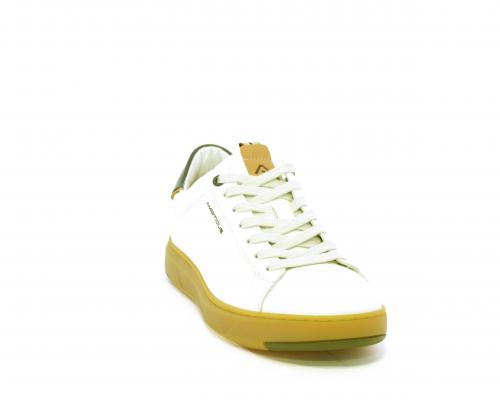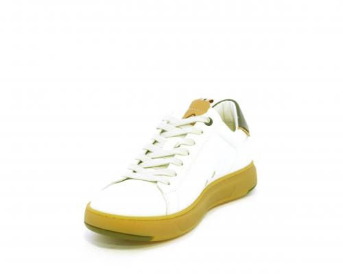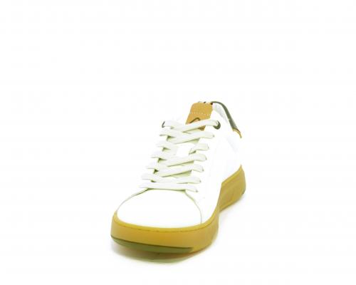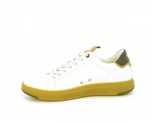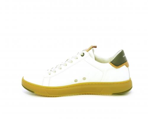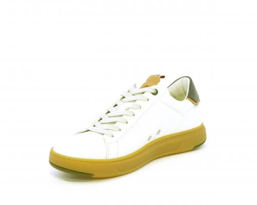Sneakers con doppio laccio di ricambio, tomaia in pelle, fondo in gomma, sottopiede e fodera interna in pelle, sistema a doppio fusbet uno sotto più sottile e un secondo fusbet sopra in memory per donare confort e benessere durante la camminata.