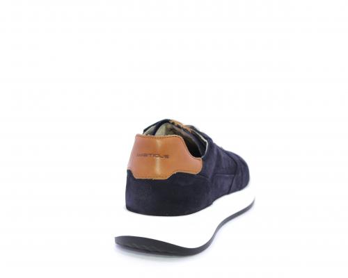 Sneakers con doppio laccio un paio bianco e un paio blu, tomaia in suede con rifinitura dietro al tallone in pelle, fondo in gomma, sottopiede e fodera interna in pelle, fusbet in memory per donare confort e benessere durante la camminata.